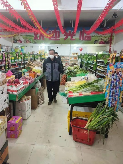 指導(dǎo)組一行來到在金城小區(qū)超市,了解蔬菜水果等商品供應(yīng)情況,向超市工作人員詳細(xì)詢問了貨源供給、商品儲備等與廣大居民生活息息相關(guān)的民生問題,叮囑項目經(jīng)理范宇昆,在疫情防控階段,必要時開啟運(yùn)輸綠色通道,全力以赴做好居民生活必需品的后勤保障工作。