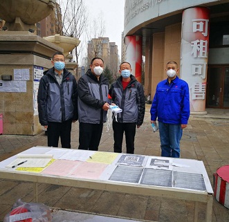 張永一行先后對如意小區、香格里拉小區及金城小區進行了走訪,對各小區的防疫工作給予了高度的肯定,并為支援社區的一線員工發放了口罩,對他們的辛勤付出表示感謝,希望各員工再接再厲,以實際行動堅決打贏疫情防控攻堅戰。