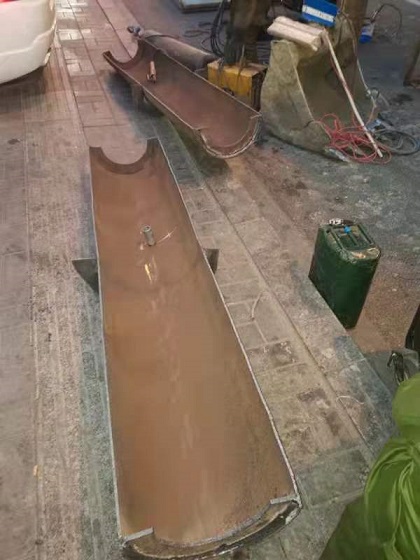 據悉,此次堵漏是將DN400的鋼管,上下一分為二,分為兩片,下面的部分加裝泄水閥,然后將上下合攏把原管道扣在里面,兩端用鋼板做內徑250和外徑400的擋板,將泄露段整體包封在里面。水流從下部泄水閥泄走,不影響焊接,在整體焊接完,關閉泄水閥。