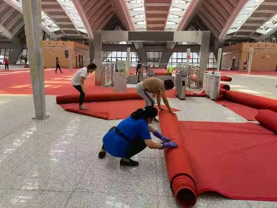 由于東客站長時(shí)間閑置導(dǎo)致站內(nèi)外車道、廣場(chǎng)雜草叢生,站內(nèi)通道、大廳地面及辦公區(qū)域灰塵堆積。由于啟用時(shí)間緊、作業(yè)面積較大,城發(fā)物業(yè)公司立即組織人員、機(jī)械設(shè)備、物料用品,次日一早,工作人員入場(chǎng)保潔,從門前車道、廣場(chǎng)除草、噴藥到建筑外立面玻璃擦拭;從站內(nèi)地面、辦公區(qū)域清潔到客車入站處場(chǎng)地及道路沖洗,隨處都能看到工作人員的身影。原本需要一周的工作,在工作人員的不懈努力下,僅用三天就完成了集團(tuán)公司安排的保潔工作任務(wù)。使保潔面積2.3萬平米的現(xiàn)場(chǎng)面貌煥然一新,具備了投入使用的條件,也體現(xiàn)了物業(yè)公司能打硬仗、敢于攻堅(jiān)的企業(yè)精神。