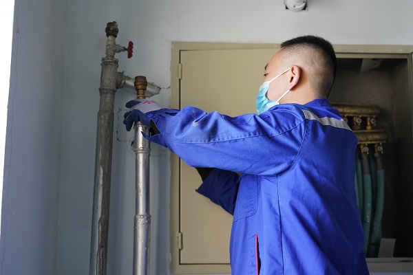 工作人員上門后,發(fā)現(xiàn)入戶閥門未打開。由于閥門長時間未開啟,工作人員一開啟,熱水一下子噴了出來,打濕了工作人員的衣服。羅阿姨覺得非常抱歉,不停地說,"辛苦了,這么冷的天,厚衣服都濕透了。"