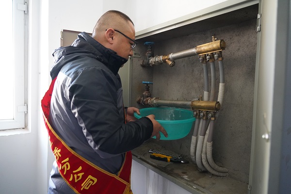 正說著,一位大娘來到我們宣傳現場,向客服人員反映家中暖氣不熱,客服人員詳細登記了老人樓棟門牌號后,隨機安排工作人員前往老人家中查看情況。客服人員先是入戶為老人進行了測溫,在老人反映最冷的陰面房間,客服人員利用專業的測溫儀,測得當時室溫23.6℃。由于當時是陽光充足的晌午,考慮到目前室溫受光照的影響,工作人員又仔細認真地查看了大娘家的地暖分集水器。通過對分集水器的檢查,工作人員發現大娘家地暖盤管有明顯的堵塞情況,需要進行沖洗。工作人員將這一情況詳細向大娘進行解釋,并為其沖洗了濾網。對于工作人員熱情、認真的服務,大娘一個勁地說好。