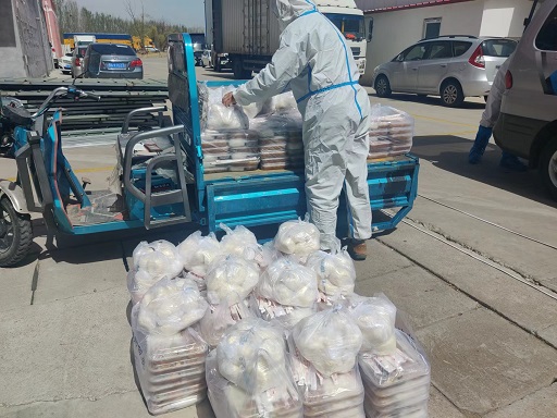 還未喘息,園區(qū)又接到供電部門通知,惱包園區(qū)高壓干線因故障維修,于21日下午14:00-18:00停電,為保障封控人員正常就餐需求,園區(qū)緊急調(diào)配移動(dòng)柴油發(fā)電機(jī)為園區(qū)餐廳提供電力保障,園區(qū)后勤保障組工作人員順利完成當(dāng)日各封控區(qū)域集中隔離人員當(dāng)日三餐共2265份的配送工作。