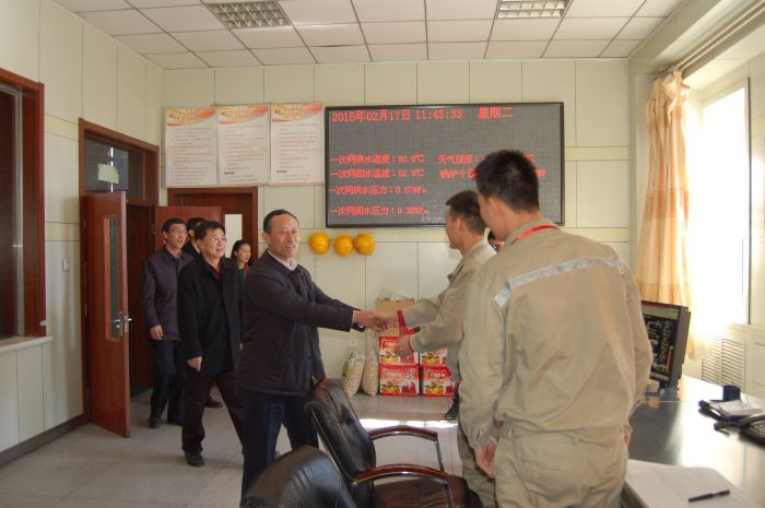 臘月二十九,黨委書記、總經(jīng)理張瑞平,黨委副書記、工會主席張永,黨委委員、副董事長杜雄勇,黨委委員、副總經(jīng)理史繼文4人率隊,分別到四個供熱分公司,深入車間、運營所、收費大廳、熱力站,對一線員工進行了慰問。(文/亞利