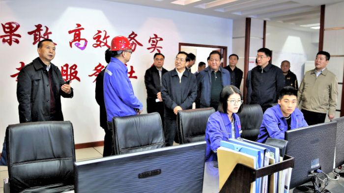 常軍政一行深入呼和浩特市城發供熱有限責任公司橋靠分公司,實地查看了橋靠分公司調度室、三車間、全封閉煤庫及環保措施的落實情況,并聽取城發公司總經理呂德育對生產情況及環保治理設施投運情況的介紹。