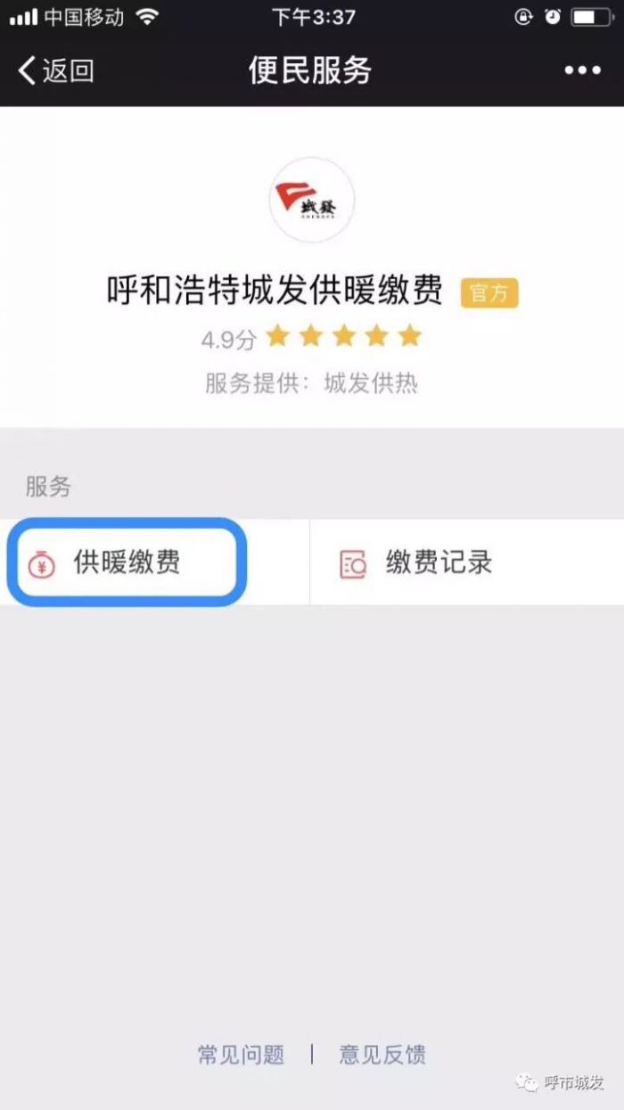 正確的微信繳費流程:我-錢包-城市服務(wù)-便民服務(wù)(生活繳費)-呼和浩特城發(fā)供暖繳費(官方)