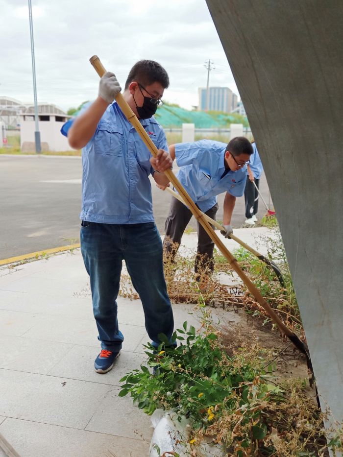 劃定區域、明確標準后,全體員工分為四組,一個個忙碌的背影投入到辛勤的勞動中。近一萬平方米的站場,圍墻邊、磚縫里雜草叢生,發車通道、綠化帶里垃圾藏匿,各小組齊心協力,不怕臟累,細心清理,連一個個細小的煙頭、一片片飄揚的紙屑都沒有放過。經過一天的苦干,站場室外部分干凈整潔、煥然一新。